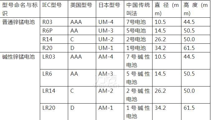 注:IEC標準中,R代表圓柱,L代表堿度,數字代表電池的大小,數字后的P代表高功率。這里有特別規定。代表5號普通鋅錳電池時,應標注為R6P,而不是R06或R6。