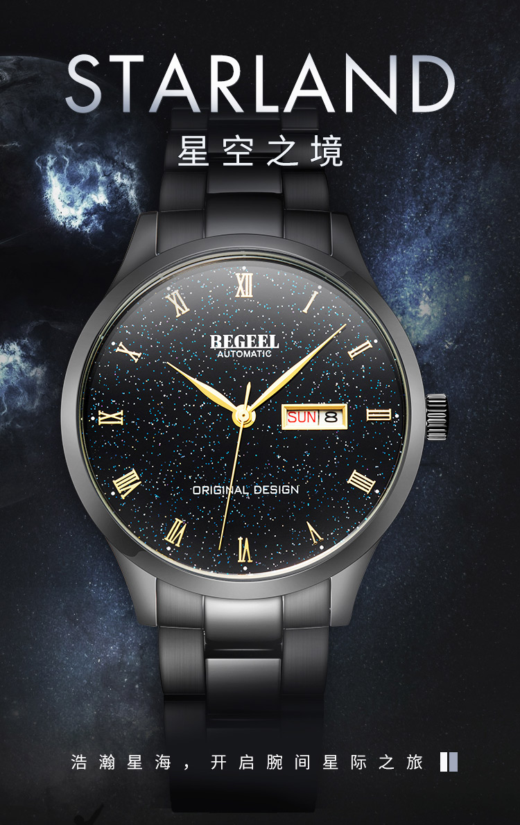 這是一款融合了法國浪漫主義又極具簡約風格的機械腕表,內外兼修,實力不俗。“外”體現在:細致水波紋表盤,藍色精鋼指針,316L精致打磨不銹鋼表殼,還有極具特色的燈塔式夜光。