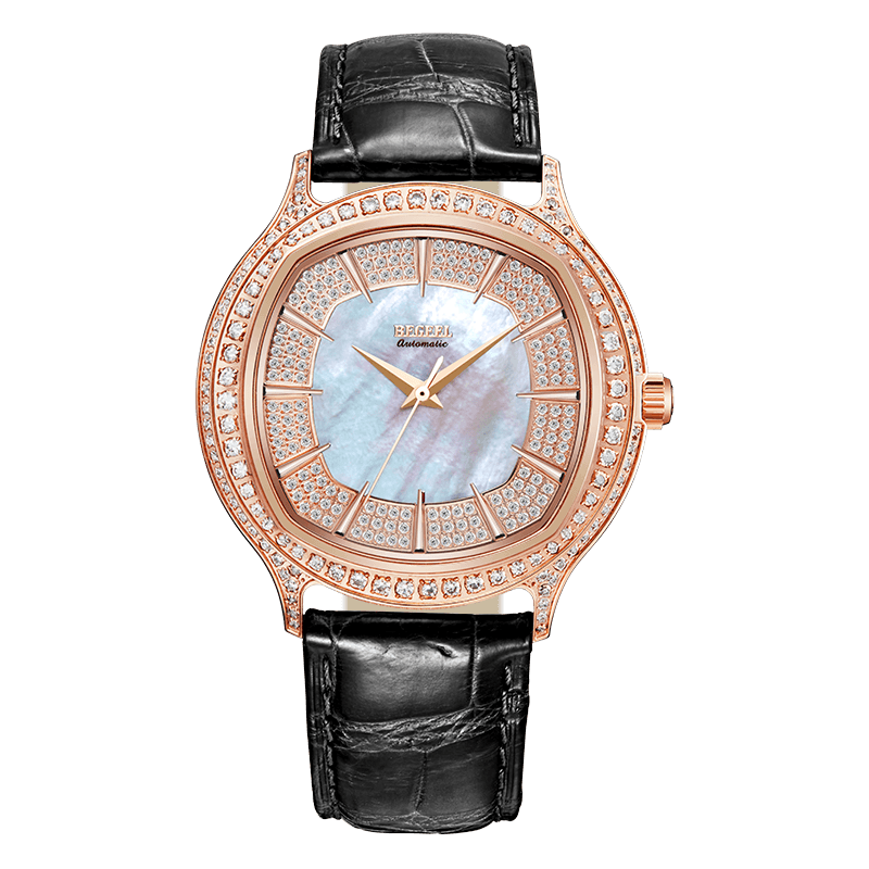 Perravi系列旗艦機(jī)械表車型首次穿上溫暖優(yōu)雅的“棕色”外套,完美呼應(yīng)玫瑰金表外殼和鱷魚皮表帶.永恒的優(yōu)雅油然而生,與卓越的機(jī)械時(shí)計(jì)功能相互輝映。棕色表板塊的設(shè)計(jì)與眾不同,與貝拉維腕表,的英雄外觀完美搭配,甚至成為一個(gè)充分發(fā)揮計(jì)時(shí)、大日歷、動(dòng)力儲(chǔ)備顯示和回?fù)苄r(shí)顯示等諸多優(yōu)秀機(jī)械功能的舞臺(tái),描繪出令人耳目一新的計(jì)時(shí)風(fēng)景。