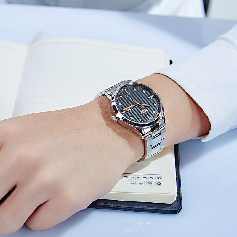 設計靈感源自夕陽下的悉尼海港大橋,表盤開闊大氣,波瀾壯闊的日內瓦條紋表盤,與海港大橋的吊索相呼應,折射出人類非凡的智慧和創造力。配色方面,科技感十足的黑色搭配鮮亮的橙色,彰顯年輕動感,讓人眼前一亮,極具時尚感和運動感。