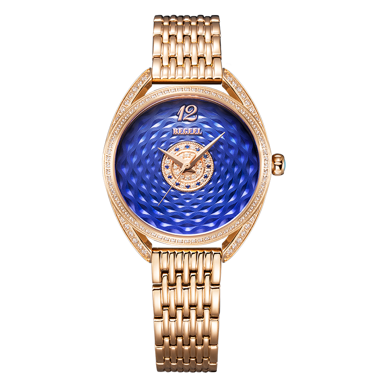 表殼:本色/電鍍玫瑰金/鑲104顆水晶鉆