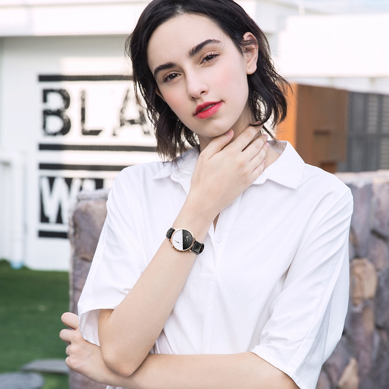 設計靈感來源于鋼琴上的黑白鍵,表盤雖然一半黑一半白,但仍十分和諧舒服。黑白相間的純粹之色,簡潔明快的流暢線條,演繹簡而不凡,雙時區功能,異地戀也可以愛沒有時差!將濃濃愛意相系腕間,釋放出純粹和永恒的魅力。