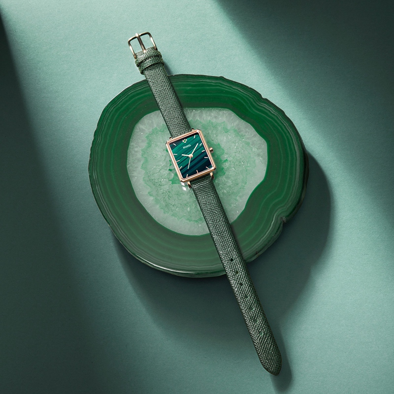 SCENREY·秘境系列-歐若拉—以深淺交織的孔雀石紋理,展現(xiàn)出時間流動的韻律之美,宛如置身于密林,幽靜長遠,卻不乏生機。演繹個性與復(fù)古;大膽八邊形表殼設(shè)計,切角圓滑,方寸之間,優(yōu)雅撩人。孔雀石紋理,氣質(zhì)又經(jīng)典的綠色,就像是「優(yōu)雅標(biāo)簽」一樣。復(fù)古與時尚之間,閃耀著摩登感的色調(diào)。