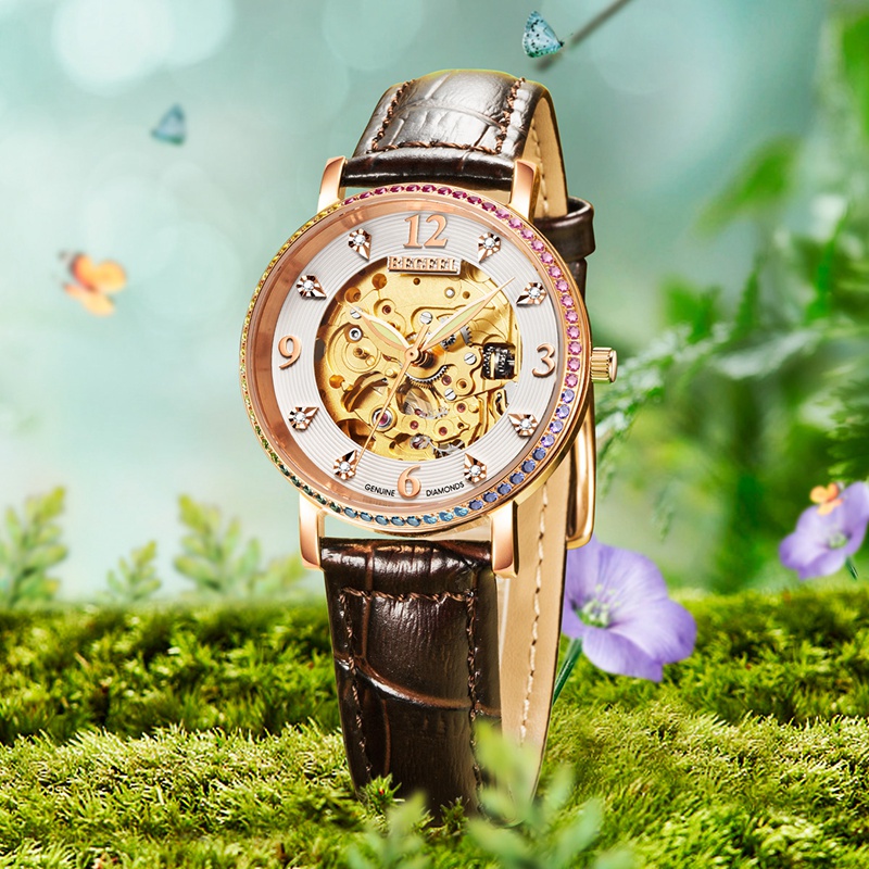 瑞士剪紙以特有的細(xì)致和精巧見長,其傳統(tǒng)可以追溯至三個世紀(jì)之前的“卡尼維”(Canivet)—— 由花邊剪紙裝飾的小型宗教圣像畫,設(shè)計師從中汲取靈感,不拘泥于傳統(tǒng)鏤空表的模式,也沒有復(fù)雜的雕刻花紋,取而代之的是摩登現(xiàn)代的造型和高新技術(shù)的運(yùn)用,在充分詮釋曲線鏤空之美的圓表盤之下藏著堅毅獨(dú)立的機(jī)械機(jī)芯,傳遞出兼具柔美與堅毅的力量,自信展示真我的天性魅力。