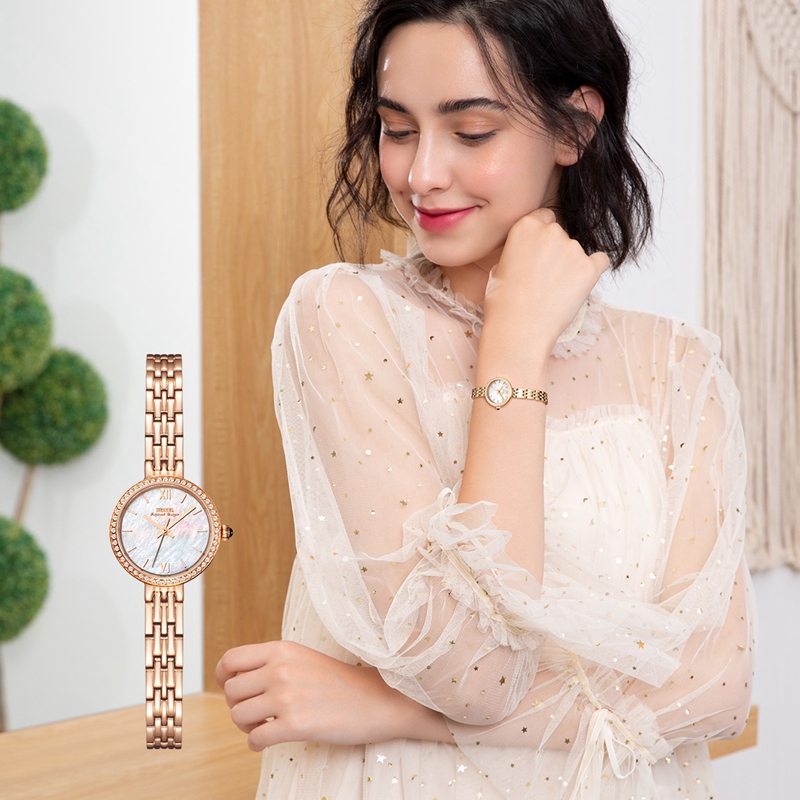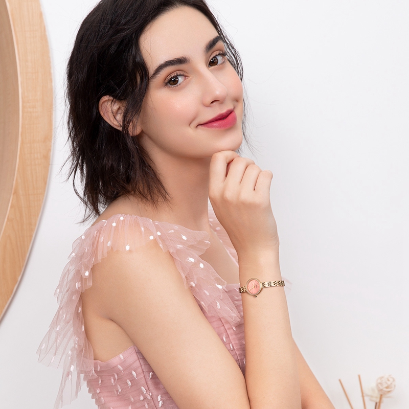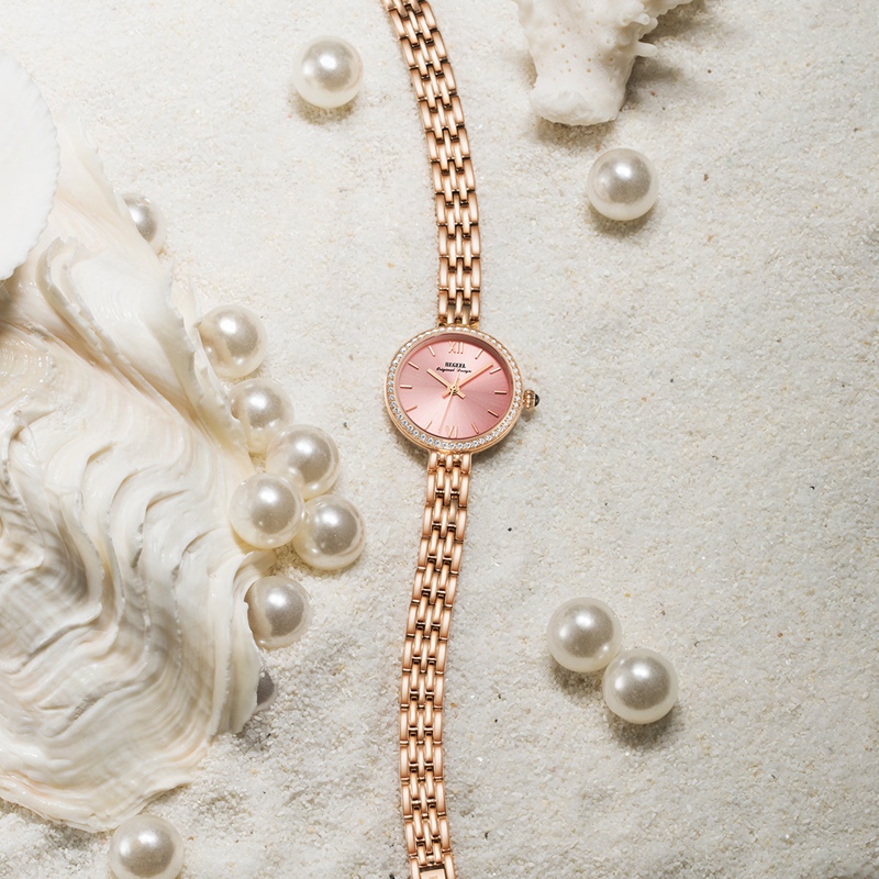 表殼:316L鋼+電鍍玫瑰金 鑲52顆水鉆