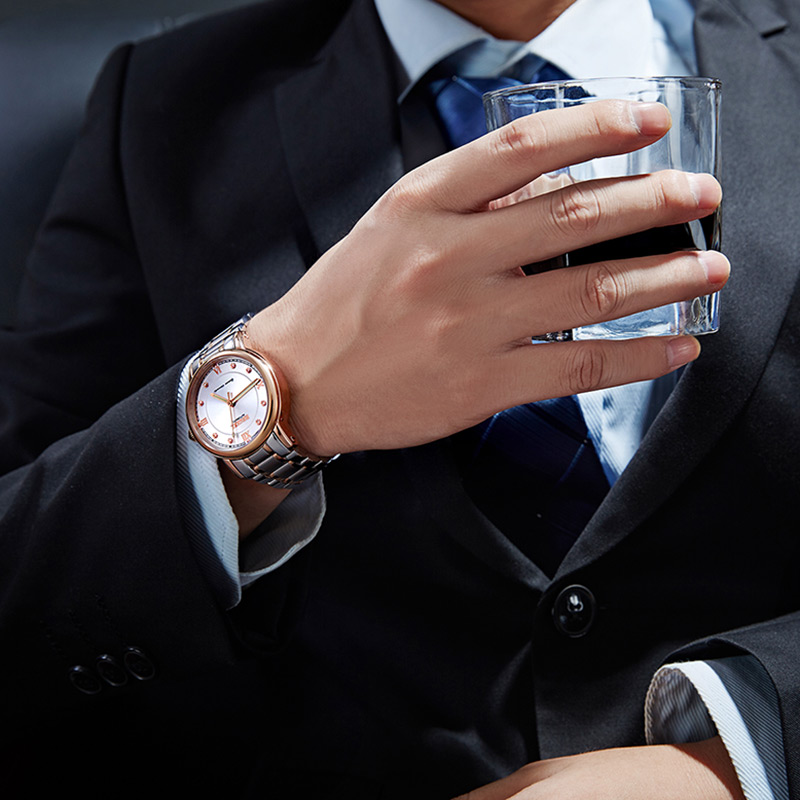 從攝影師的鏡頭中汲取靈感,運用同心圓和軌道紋設計,重現鏡頭下的立體光影變幻。透過藍寶石水晶表鏡,圓形表盤的精致細節盡收眼底,靈感源自單反相機鏡頭的透鏡,光線進入透鏡會在感光元件上匯聚成像,中心銀色拉絲太陽紋小表盤,完美復刻了透鏡下流轉的光影,炫彩奪目。中間刻度圓環設計源自相機鏡頭的前蓋,軌道紋設計源自黑色對焦環,設計師將相機的結構特色和鏡頭下的光影效果融入腕表設計,定格美好時光。