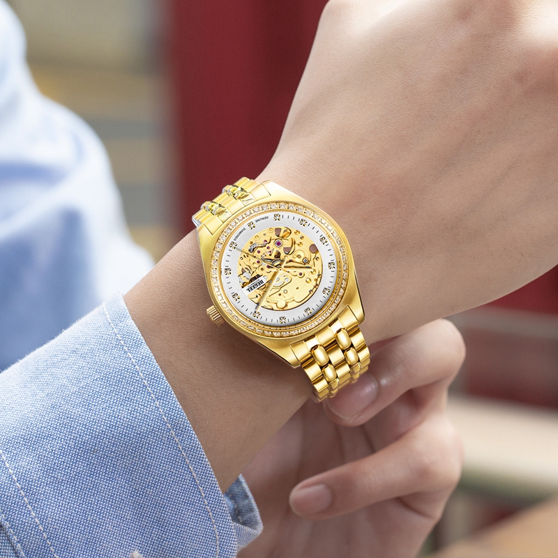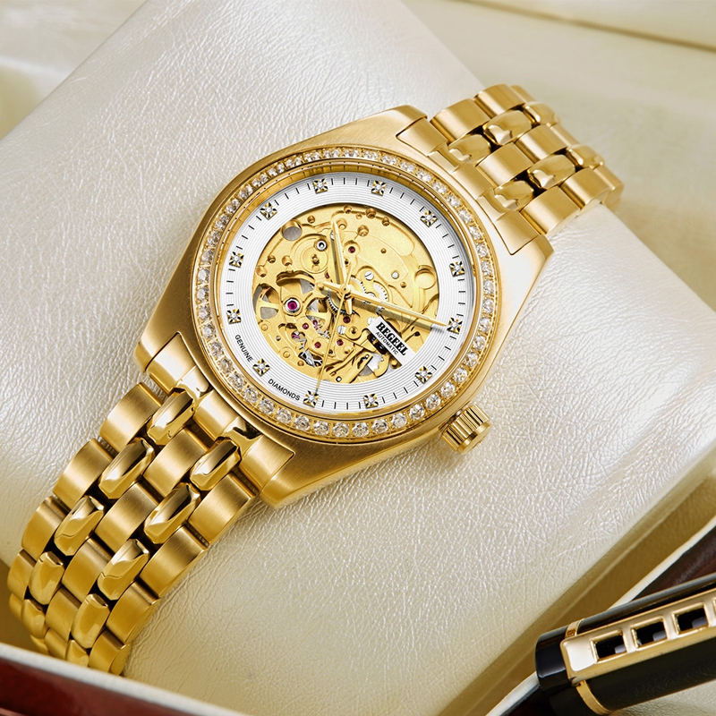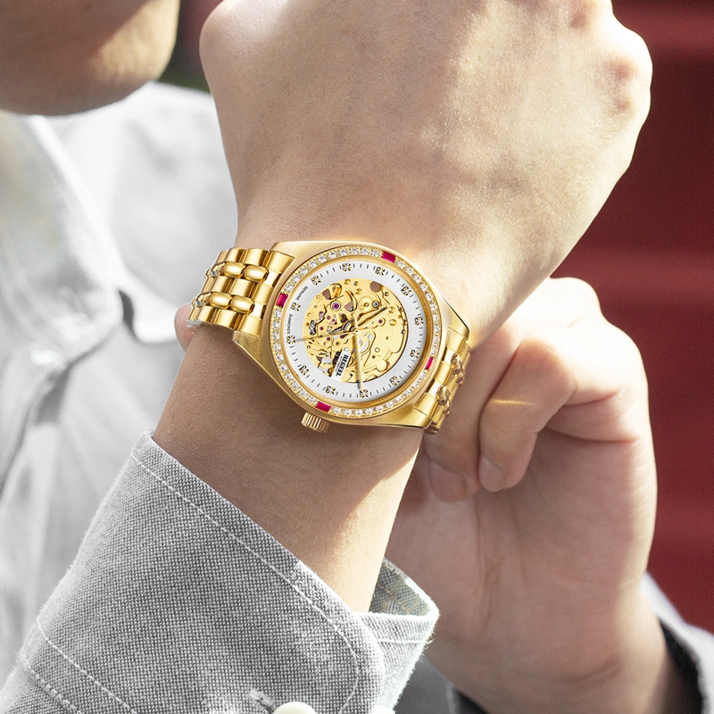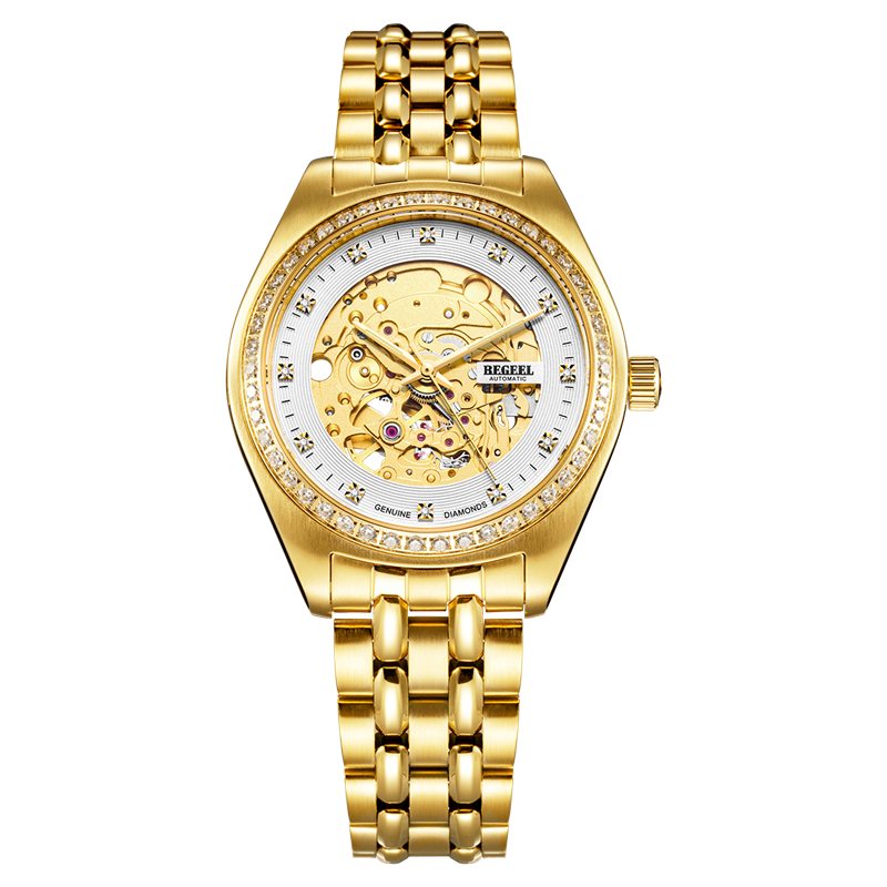 表殼:白鉆圈-316L精鋼電鍍金,紅鉆圈-316L精鋼電鍍金,鑲40顆晶鉆,4顆紅方晶鉆