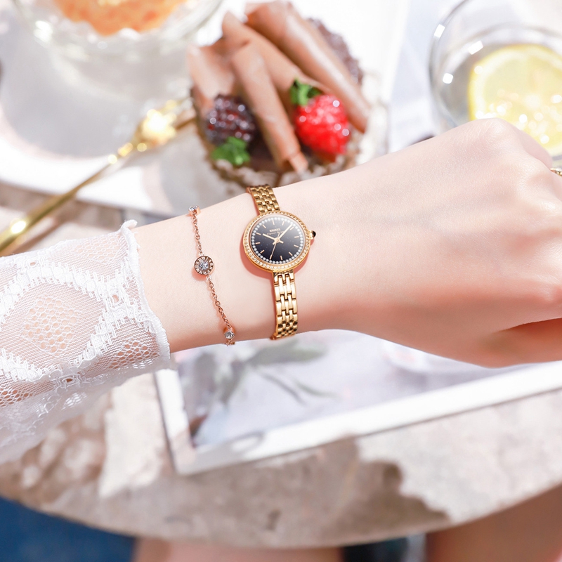 表殼:316L鋼+電鍍玫瑰金,鑲52顆水晶鉆