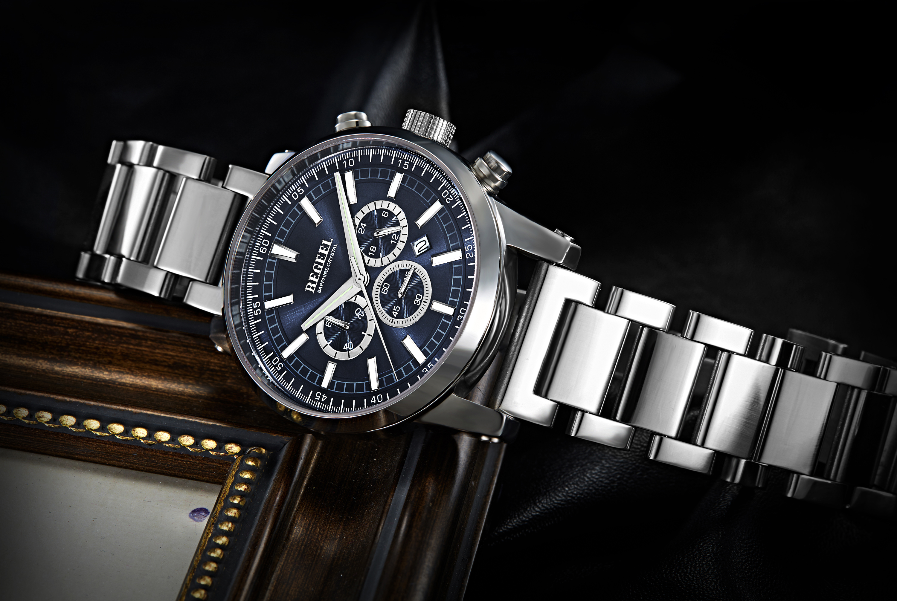 一款以F1賽車運動為主題的運動腕表,設計頗為考究,轉印秒度圈設計和倒金字塔三眼小表盤靈感均來源于F1賽車的儀表盤,經典黑與動感藍兩色表盤設計分別來源于儀表盤的黑色外框和藍色熒光顯示。中間灰色環形軌道紋環繞,設計源自賽車環形賽道。賓爵設計師將現代高端技術與精致機械工藝相結合,以沉穩雅致的美學,完美呈現“紳士車手”年代競速魅力,傳承著賽車的精神和傳統。