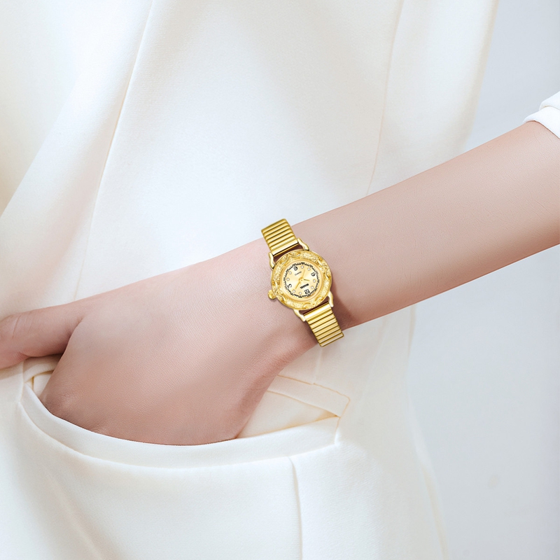 DREAM·夢想系列-小玲瓏— 嫵媚柔情生凈土,玲瓏倩影競凡華,設計師在表殼上進行了細膩的雕花處理,層次感十足,電鍍真金工藝打造,盡顯女性優雅魅力。