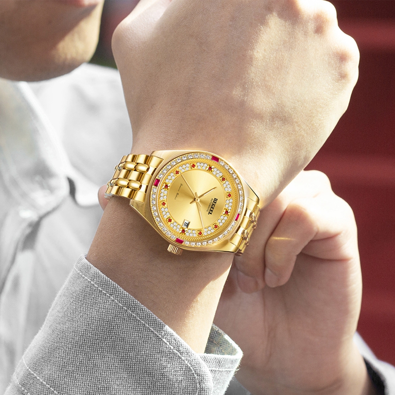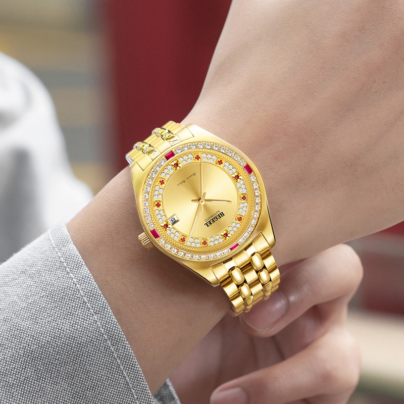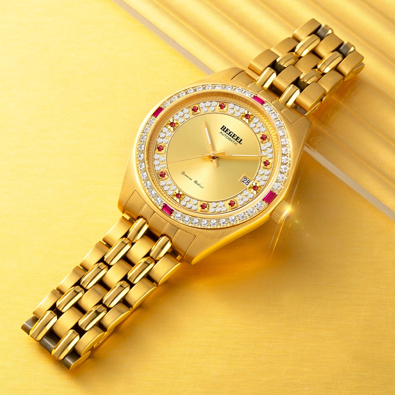 表殼:316L精鋼+電鍍真金,圈口鑲嵌46顆晶鉆