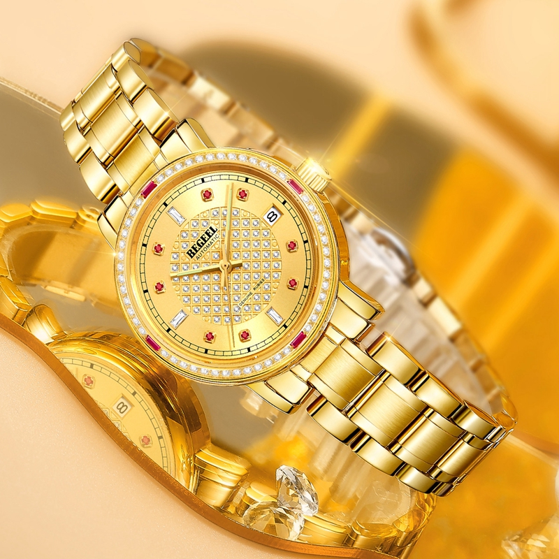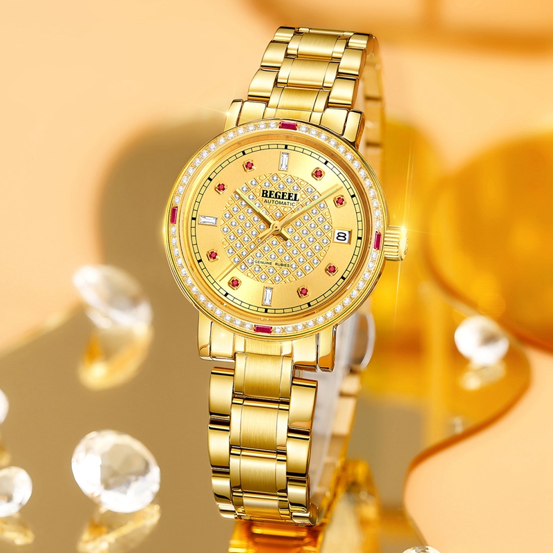 表殼:316L精鋼電鍍真金,56顆晶鉆
