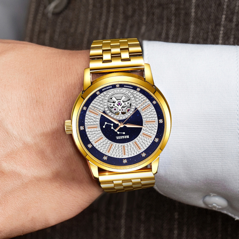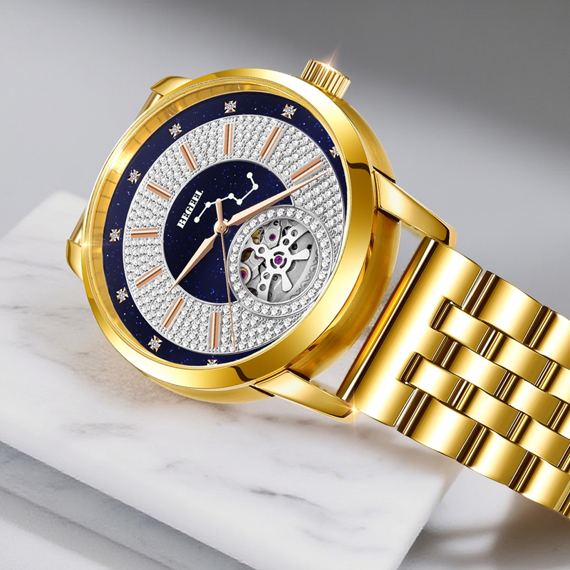 BEGEEL賓爵流金時光男士真鉆機械腕表