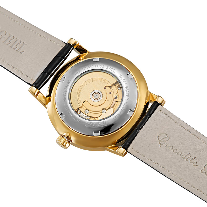 腕表設計靈感源自法國著名建筑巴黎圣母院的建筑結構,簡約的圓形線條取自巴黎圣母院的標志圓形彩色玫瑰玻璃窗。精雕的扇骨從中心向四周延伸,幻化成表盤的放射狀拉絲太陽紋。