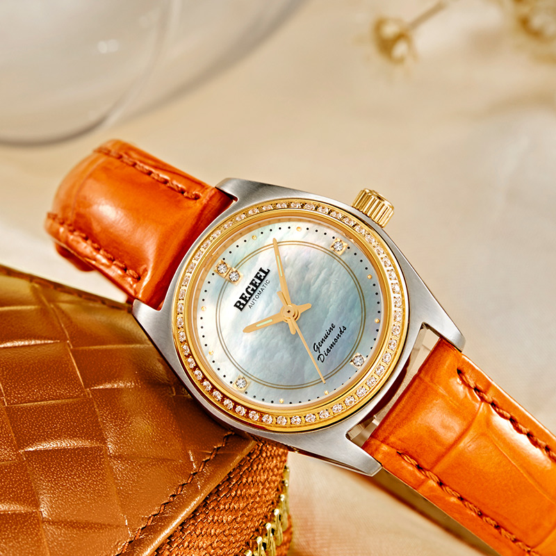 女人最大的光環(huán)是什么?姣好的面容、傲人的身材、體面的工作、與眾不同的氣質(zhì)、堅(jiān)強(qiáng)而獨(dú)立的人格……相信每一位女性都會(huì)有自己的見解。賓爵設(shè)計(jì)師將女性的美麗光環(huán)抽象為一個(gè)設(shè)計(jì)符號,融入腕表設(shè)計(jì)之中。金色的表圈上均勻鑲嵌48顆閃亮晶鉆,璀璨的滿天星表圈仿佛女人身上自帶的美麗光環(huán),照亮自己,也照亮他人。